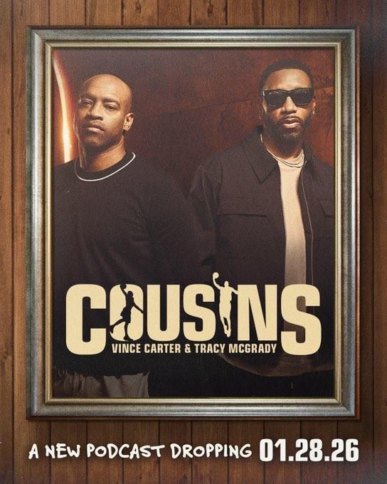 北京时间今日,前NBA球星文斯-卡特和特雷西-麦克格雷迪宣布,二人将联手举办全新周更播客节目“Cousins”,该节目将于当地时间1月28日正式上线。